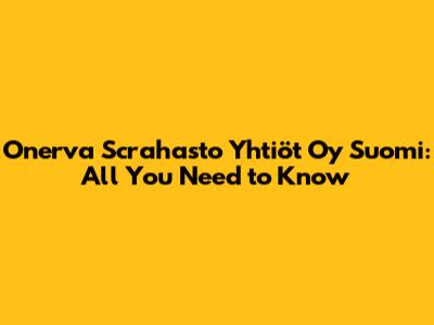 Onerva Scrahasto Yhtiöt Oy Suomi: All You Need To Know