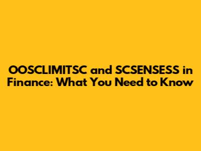 OOSCLIMITSC And SCSENSESS In Finance: What You Need To Know