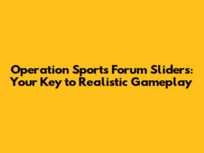 Operation Sports Forum Sliders: Your Key To Realistic Gameplay