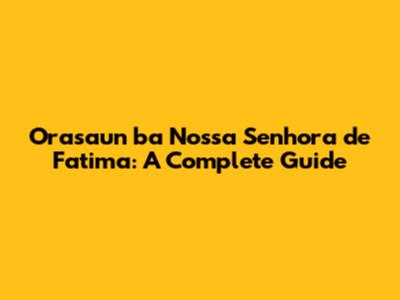 Orasaun Ba Nossa Senhora De Fatima: A Complete Guide