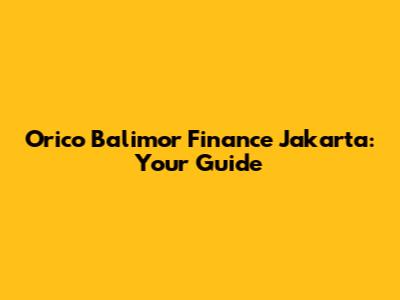 Orico Balimor Finance Jakarta: A Comprehensive Overview