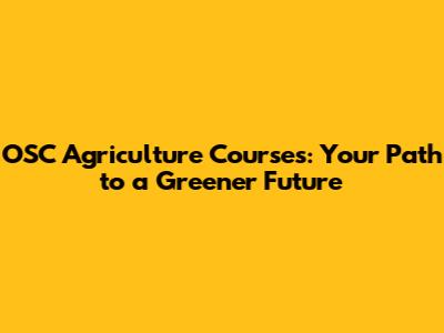 OSC Agriculture Courses: Your Path To A Greener Future