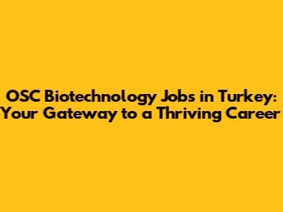 OSC Biotechnology Jobs In Turkey: Your Career Guide
