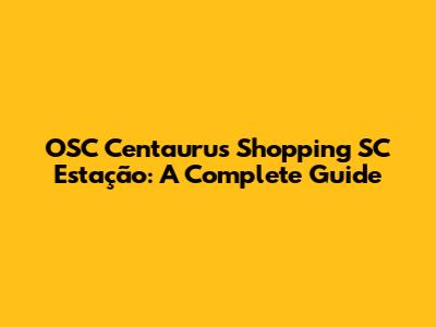 OSC Centaurus Shopping SC Estação: A Complete Guide