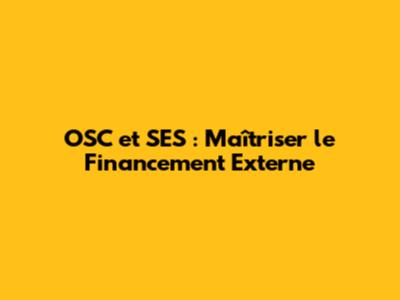 OSC Et SES : Maîtriser Le Financement Externe