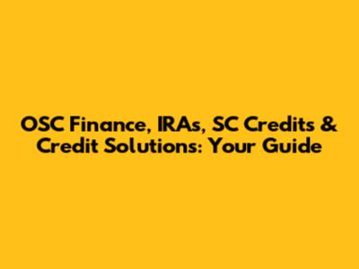 OSC Finance, IRAs, SC Credits & Credit Solutions: Your Guide