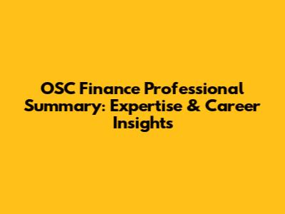 OSC Finance Professional Summary: Expertise & Career Insights