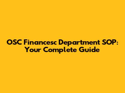 OSC Financesc Department SOP: Your Complete Guide
