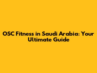 OSC Fitness In Saudi Arabia: Your Guide