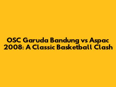 OSC Garuda Bandung Vs Aspac 2008: A Classic Basketball Clash