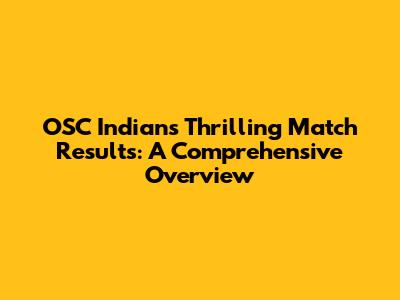 OSC Indians' Thrilling Match Results: A Comprehensive Overview
