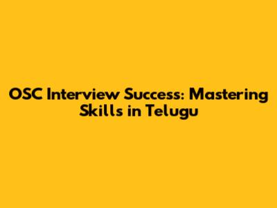OSC Interview Success: Mastering Skills In Telugu