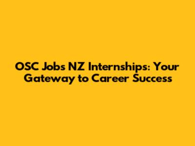 OSC Jobs NZ Internships: Your Gateway To Career Success