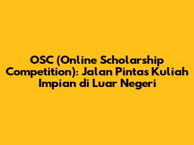 OSC (Online Scholarship Competition) adalah sebuah kompetisi beasiswa yang diselenggarakan secara online. Kompetisi ini biasanya diikuti oleh ribuan siswa SMA/SMK/MA sederajat di seluruh Indonesia yang punya impian untuk melanjutkan pendidikan ke jenjang perguruan tinggi, baik di dalam maupun di luar negeri. Nah, keunggulan utama dari OSC ini adalah kalian bisa mendapatkan beasiswa secara penuh atau sebagian, yang tentunya sangat membantu meringankan beban biaya kuliah. Selain itu, OSC juga menjadi ajang yang tepat untuk menguji kemampuan kalian, mulai dari kemampuan akademik hingga wawasan tentang dunia pendidikan.