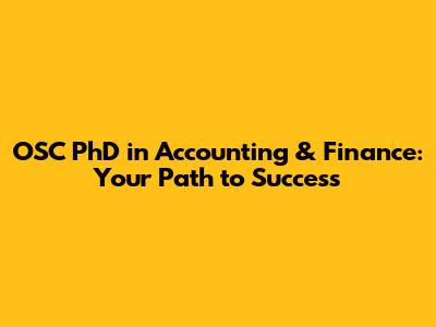 OSC PhD In Accounting & Finance: Your Path To Success