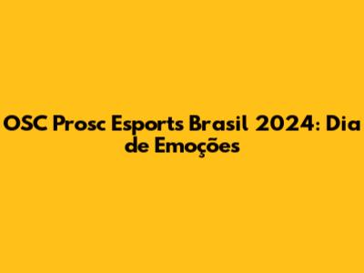 OSC Prosc Esports Brasil 2024: Dia De Emoções