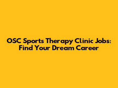 OSC Sports Therapy Clinic Jobs: Find Your Dream Career
