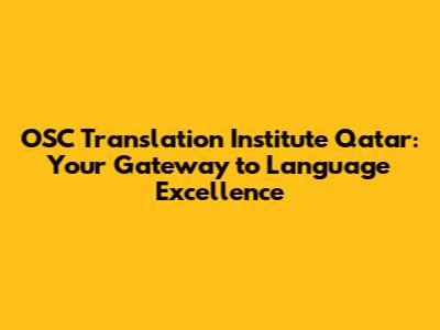 OSC Translation Institute Qatar: Your Gateway To Language Excellence