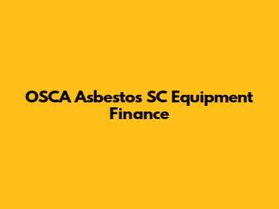 OSCA Asbestos SC Equipment Finance: Your Key To Growth