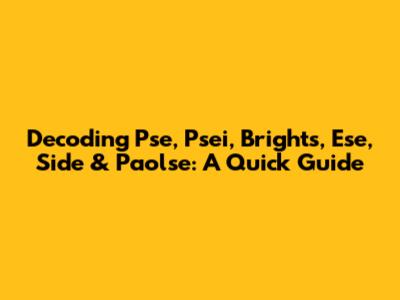Decoding Pse, Psei, Brights, Ese, Side & Paolse: A Quick Guide