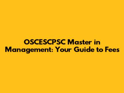OSCESCPSC Master In Management: Your Guide To Fees
