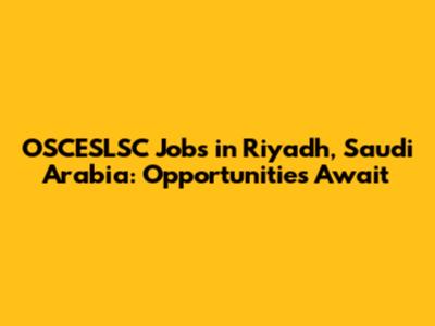 OSCESLSC Jobs In Riyadh, Saudi Arabia: Opportunities Await