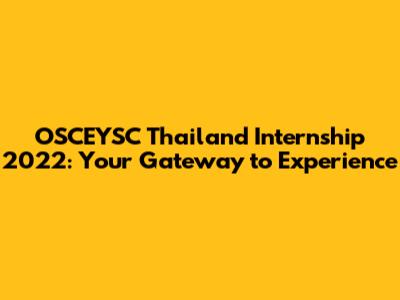 OSCEYSC Thailand Internship 2022: Your Gateway To Experience