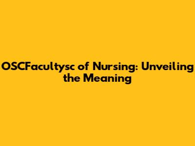 Alright, let's get down to brass tacks. OSCFacultysc of Nursing isn't exactly a widely recognized or standardized acronym. However, based on the context and common practices, we can break it down to understand its meaning. Here's a likely interpretation: