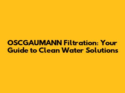 OSCGAUMANN Filtration: Your Guide To Clean Water Solutions