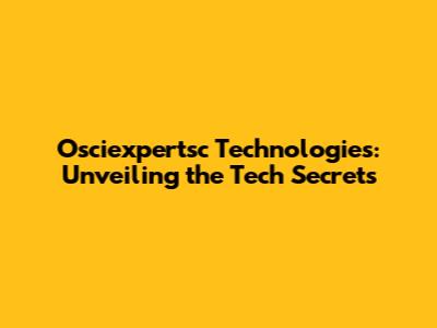 Osciexpertsc Technologies: Unveiling The Tech Secrets