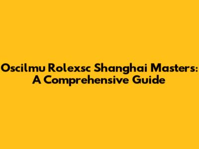 Oscilmu Rolexsc Shanghai Masters: A Comprehensive Guide