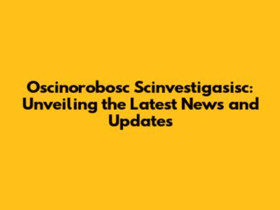 Oscinorobosc Scinvestigasisc: Latest News And Updates