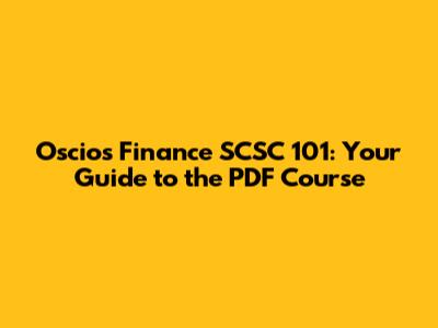 Oscios Finance SCSC 101: Your Guide To The PDF Course