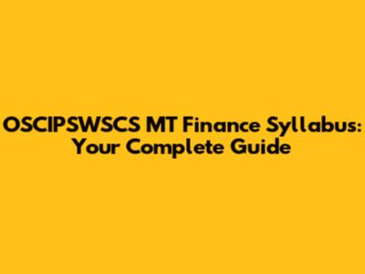 OSCIPSWSCS MT Finance Syllabus: Your Complete Guide