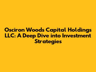Osciron Woods Capital Holdings: Unveiling Investment Strategies