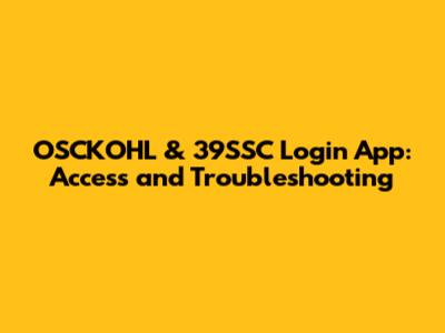 OSCKOHL & 39SSC Login App: Access And Troubleshooting