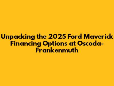 Hey guys, let's dive deep into what the 2025 Ford Maverick financing looks like over at Oscoda-Frankenmuth! This compact pickup truck has been a total game-changer since its debut, and it's no surprise that folks are eager to know how they can get their hands on the upcoming model. Whether you're a first-time truck buyer or looking to downsize from a larger rig, understanding your financing options is super crucial. We're talking about securing a deal that fits your budget and gets you cruising in that sweet, sweet Maverick. This article is your go-to for all things financing related to the 2025 Maverick, specifically focusing on what you can expect from Oscoda-Frankenmuth. We'll break down potential interest rates, loan terms, lease deals, and any special manufacturer incentives that might be on the table. Getting the right financing isn't just about the monthly payment; it's about the total cost of ownership and ensuring you're comfortable with the long-term commitment. So, buckle up, and let's get this financial roadmap laid out for you so you can drive off the lot with confidence and a smile!