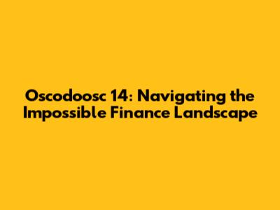 Oscodoosc 14: Navigating The Impossible Finance Landscape