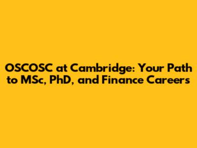 OSCOSC At Cambridge: Your Path To MSc, PhD, And Finance Careers
