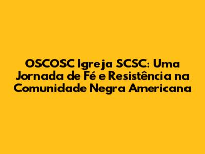 OSCOSC Igreja SCSC: Celebrando A Fé Negra Nos EUA