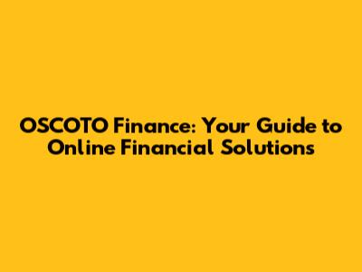 OSCOTO Finance: Your Guide To Online Financial Solutions