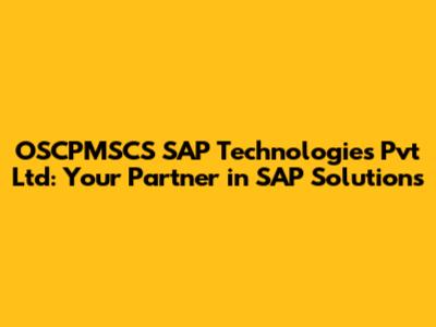 OSCPMSC SAP Technologies: Services And Solutions