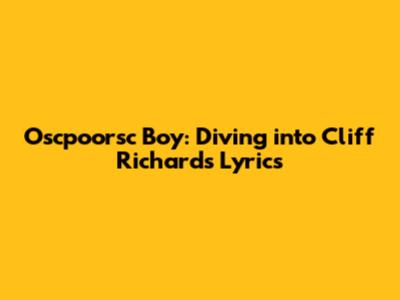 Oscpoorsc Boy: Diving Into Cliff Richard's Lyrics