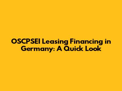 OSCPSEI Leasing Financing In Germany: A Quick Look