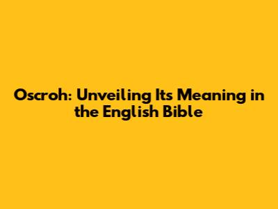 Oscroh: Unveiling Its Meaning In The English Bible
