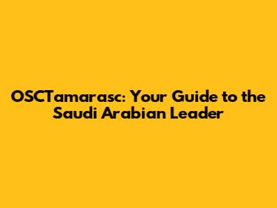 OSCTamarasc: Your Guide To The Saudi Arabian Leader