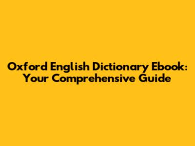 Oxford English Dictionary Ebook: Your Comprehensive Guide