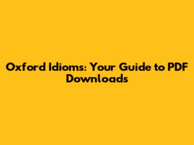 Oxford Idioms: Your Guide To PDF Downloads