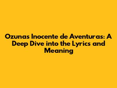 Hey guys! Ever get a song stuck in your head, and you just have to understand what it's all about? Well, that's how I felt when I first heard Ozuna's "Inocente de Aventuras." It's a track that instantly grabs you with its infectious beat and Ozuna's signature vocals. But beyond the catchy rhythm, there's a story being told, a narrative woven into the lyrics that's worth exploring. So, let's dive into the world of "Inocente de Aventuras" and unpack the meaning behind Ozuna's words.