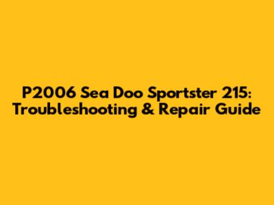 P2006 Sea Doo Sportster 215: Troubleshooting & Repair Guide